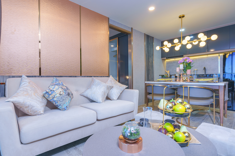 「FIND YOUR ESCAPE, INVEST YOUR LIFESTYLE」のコンセプトは、インテリアデザインにも反映されています。各ユニットは、周囲の静寂を感じさせる場所として設計され、高級な仕上げと細部への注意があらゆるスペースに投影されています。豊かなテクスチャーが全体の内装に自然な魅力をもたらし、スパのようなバスルームには高級スパバスタブとマッサージシャワーが完備され、空気清浄機が生活環境を清潔に保ちます。さらに、完全に統合されたスマートシステムは洗練された快適さと利便性を提供します。最終的には、ここはあなたの住まいであり、逃避地であり、ライフスタイルの象徴です。