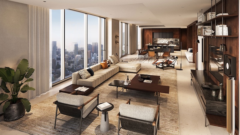 お部屋の広さは204㎡〜517㎡、間取りは3ベッドルーム〜ペントハウスまでの3タイプがあります。
