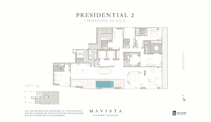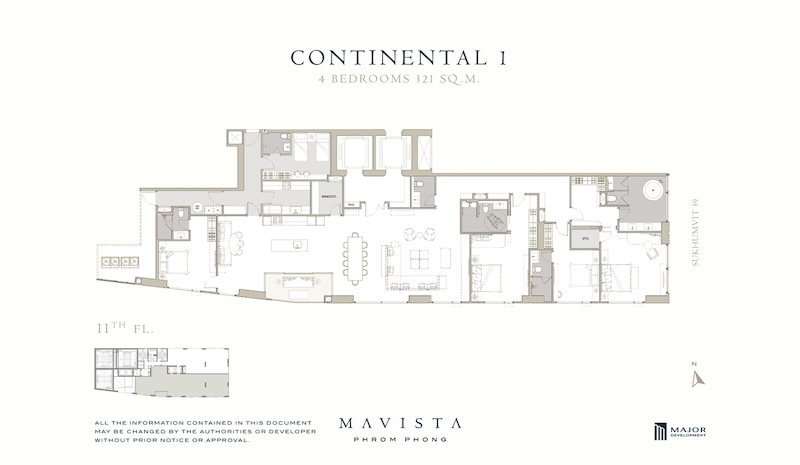 Mavista Phrom Phong(マビスタ プロム ポン)は、タイ・バンコクのワッタナー地区に位置する、1棟、32階建て、45戸の高層型コンドミニアムです。この不動産物件の開発会社はMajor Development(メジャー ディベロップメント)です。ユニットは3ベッドルーム、4ベッドルーム、5ベッドルームの3つの間取りがあり、204㎡〜517㎡の広さとなっています。主な施設・設備には、27mのスイミングプール、専用エレベーター、コンシェルジュサービス、フィットネスルーム、エクスクルーシブラウンジなどがあります。また、周辺にはBTSプロムポン駅、エンポリアム、エムクオーティア、ベンジャシリ公園、サミティヴェート病院 スクンビット、インターナショナルスクールなどがあります。