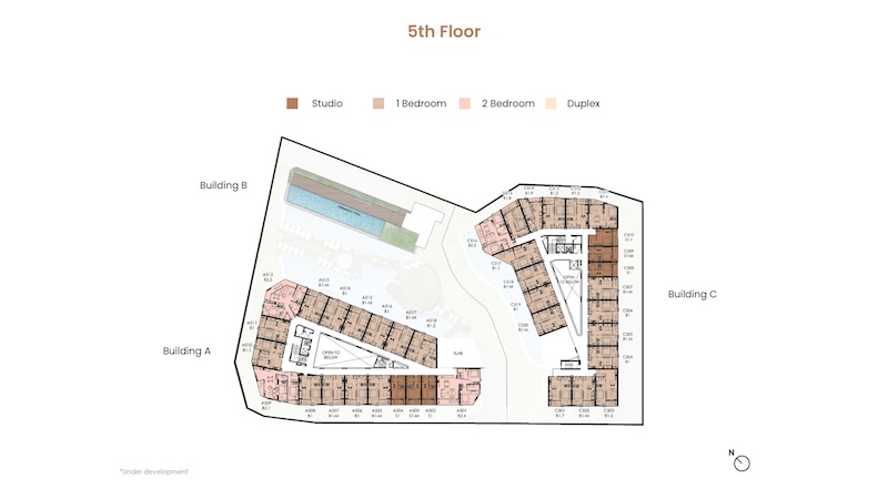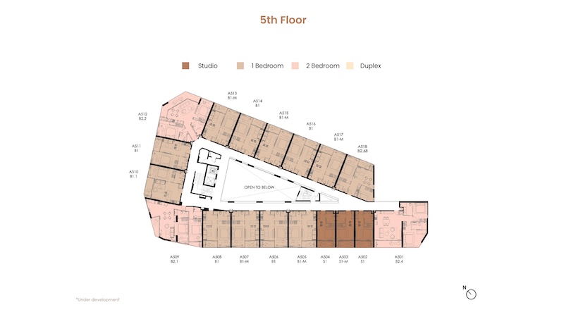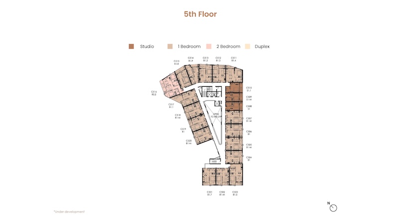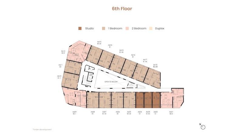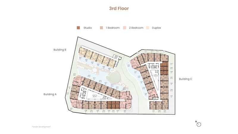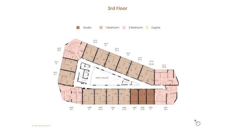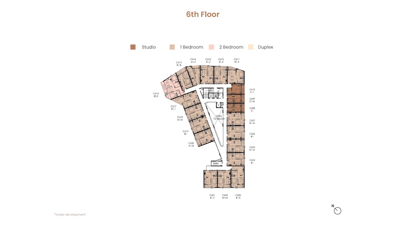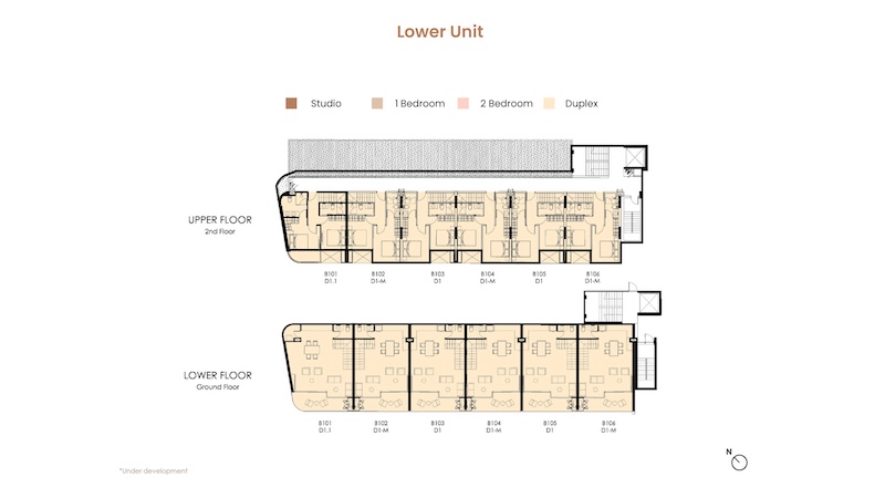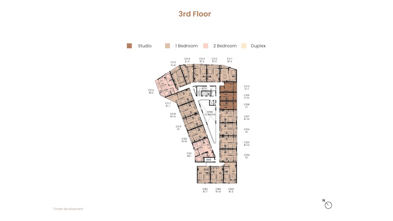 お部屋の広さは30㎡〜104.25㎡、間取りはスタジオ〜デュプレックスまでの4タイプがあります。