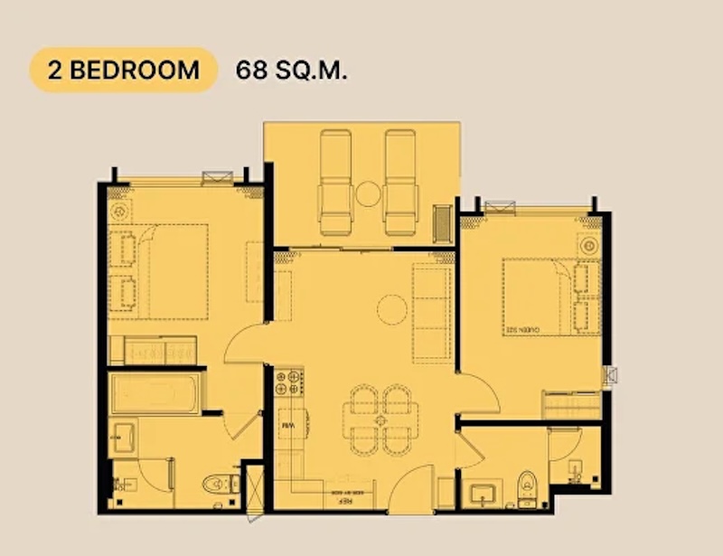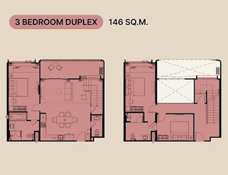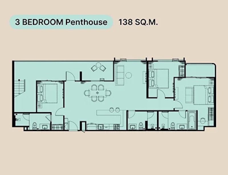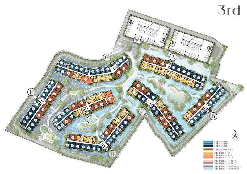 お部屋の広さは29.00㎡〜148.00㎡、間取りは1ベッドルーム〜3ベッドルームまでの4タイプがあります。